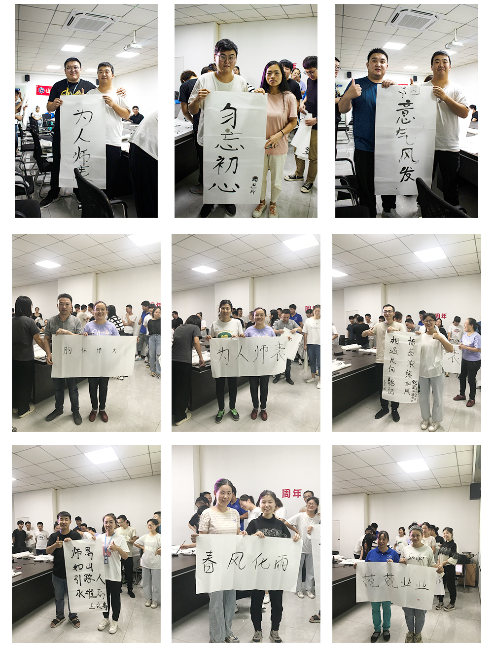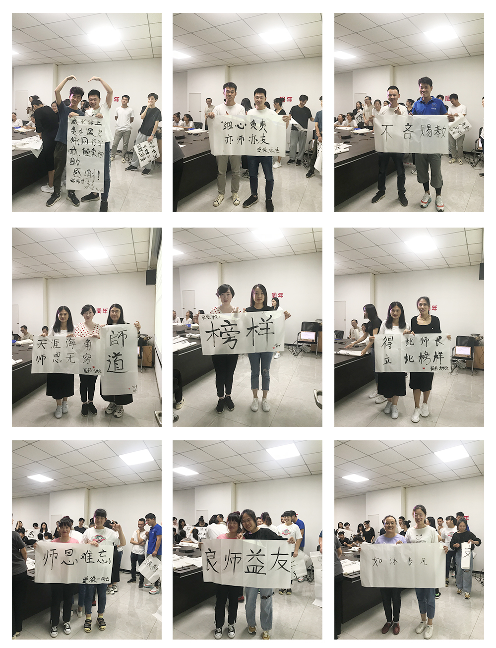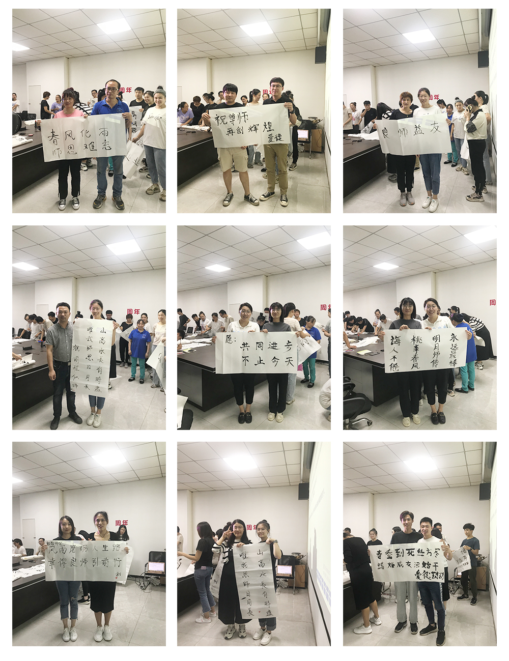 第二個環(huán)節(jié)是徒弟為師父寫一幅字,表達(dá)對師父的感恩與敬意。在此期間師父與徒弟共同完成書法,徒弟將書法雙手獻給自己的師父,并與師父合影留念。濃濃的師徒情誼感染了在場的每一個人。相信在以后的工作中也定會師徒齊心,完成前方的困難與挑戰(zhàn)。