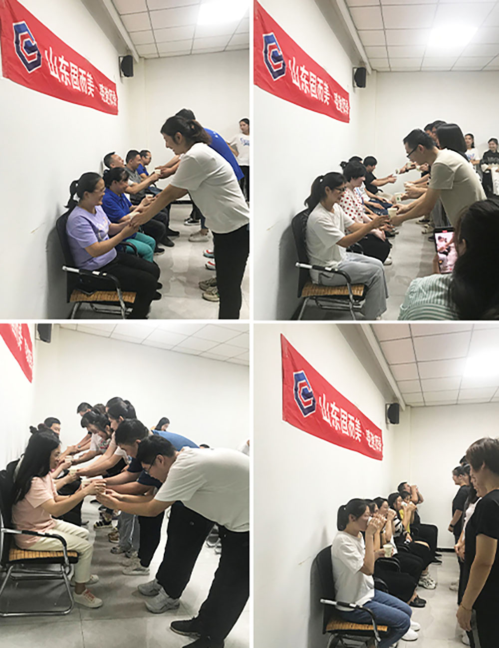 第三個環(huán)節(jié),由徒弟向師父敬茶。一杯茶水,一句師父辛苦了,往日那點點滴滴的回憶都涌上心頭,師父看著你從一個剛?cè)牍镜男氯说铰娜谌牍潭肋@個大家庭。不由得發(fā)出“這水真甜!”的感嘆。