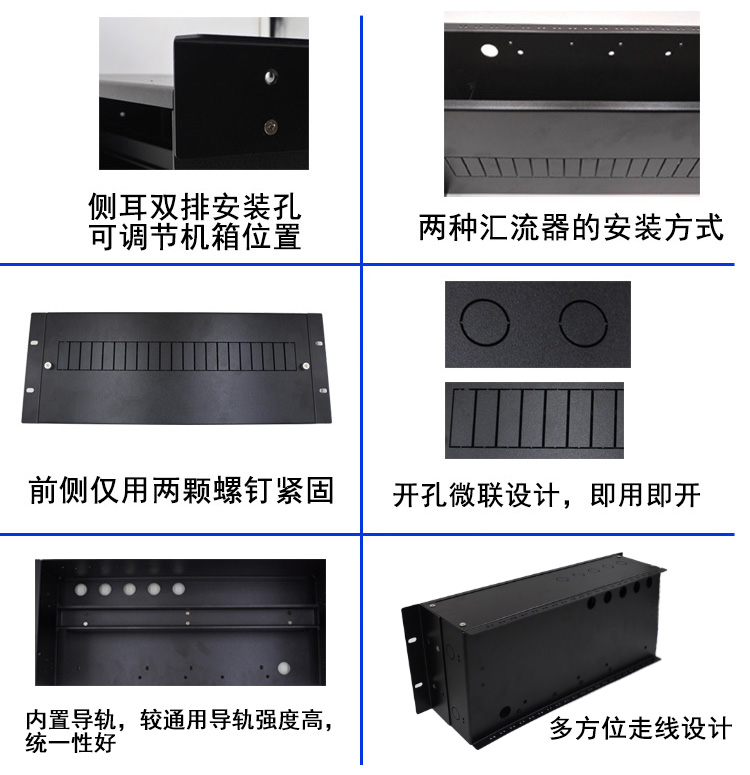 1、走線方式:支持上走線、下走線、左、右側(cè)方走線。且開置多個線束固定扎帶孔,走線更牢固,美觀。