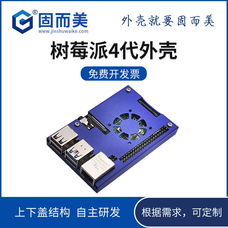 好馬配好鞍,一套優(yōu)秀的硬件要搭配更加成熟穩(wěn)定的外殼,固而美是專注于做精密金屬外殼的公司,專業(yè)提供樹莓派4代和3代的產(chǎn)品外殼方案,支持按需定制,這款樹莓派外殼材質(zhì)上選用的是1.0mm的鍍鋅鋼板,美觀大氣,結(jié)實耐用。外殼表面進行了藍色靜電噴塑,造型時尚,科技感十足!結(jié)構(gòu)上選用了上下蓋的結(jié)構(gòu)方式,支持安裝卡扣,易安裝拆卸,維護檢修,簡約大方。