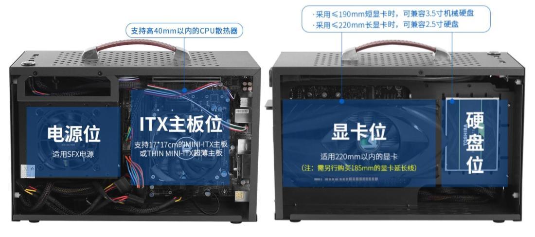 1、itx手提式小機箱的體型帶來了相應的空間來組裝電源線、主板芯片、顯卡、硬盤等硬件配置,同時通過機箱內(nèi)的托架可將各種硬件配置固定機箱內(nèi),構(gòu)成一個相對獨立的體系結(jié)構(gòu)。